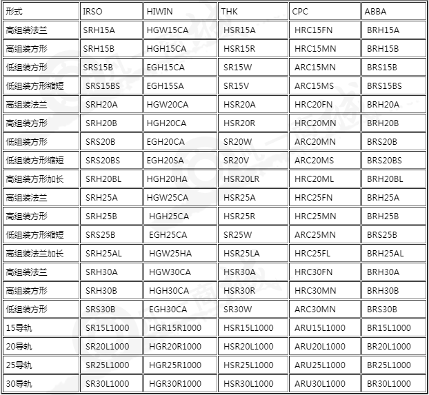飛梭IRSO與其他品牌直線導(dǎo)軌型號(hào)兌換表: