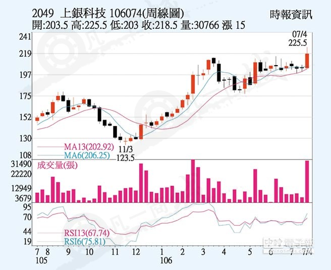 上銀7月營收上看18億 股價(jià)周漲幅7.37%
