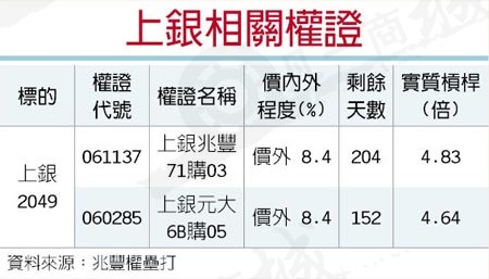 目前上銀股價本益比約25倍,略低于歷史本益比12~40倍區間平均值。在新產品陸續出貨、且訂單回流速度大幅優于預期的情況下,投資人可適時利用權證進可攻、退可守的特性參與個股行情。