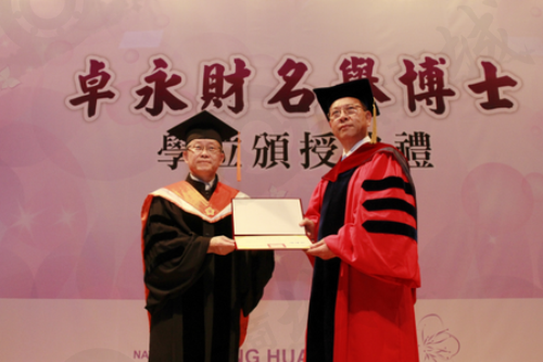 國立清華大學日前頒授名譽博士學位給上銀科技董事長卓永財。表彰他對國家、社會、產業、教育的卓越貢獻,影響深遠;清華大學校長賀陳弘推崇卓董事長其人生實踐與企業經營理念,實為校訓「自強不息,厚德載物」的典范,足為師生表率。