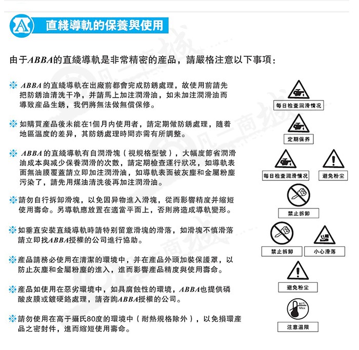 ABBA直線導軌(ABBA Linear)是臺灣國標直線科技股份有限公司生產。成立于1999年成立至今,是臺灣第一家擁有四排珠自潤專利并實際導入量產的線性滑軌專業制造廠。國際直線科技累積十八年精密滾珠螺桿的制造經驗,掌握核心關鍵技術,并結合臺灣科技大學的線性滾珠滑軌研發能力,順利于2000年完成量產計畫,并獲得多項世界專利?成功地將產品推向世界舞臺,目前擁有自有品牌的經銷網遍及臺灣、大陸、韓國、日本、歐美等地。