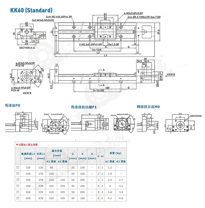 • 線性模組HIWIN模組(工業機器人)KK60系列KK6010C-600A1-F0