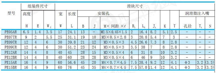 NSK直線滑塊型號:PAU05TR、PAU07AR、PAU09TR、PAU09UR、PAU12TR、PAU12UR、PAU15AL、PAU15BL