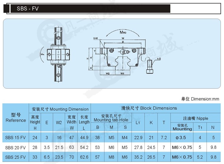 • 直線導軌SBC直線導軌SBS-FV系列SBS15FV