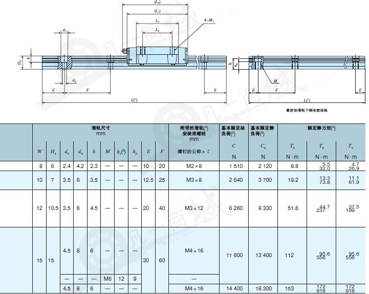 3、安裝基準面B、D及安裝面A、C已經過精密的研磨精加工。所以如果安裝側的機械、裝置等的安裝面也經過了高精度的加工并正確安裝,就能夠獲得穩定的高精度直線運動。