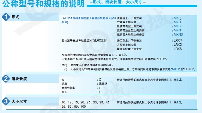 IKO直線導軌LRX系列可發(fā)揮最高滾動導向性能的圓柱滾子型直線導向設(shè)備:該系列IKO直線導軌是最大限度發(fā)揮圓柱滾子的優(yōu)異特性,使承載負荷、剛性、摩擦特性、行走精度等各個方面的特性都達到最高性能的直線導向設(shè)備。IKO直線導軌C-Lube自潤滑、免維護LRX系列,滿足多樣需求的豐富產(chǎn)品群滑塊以法蘭型為主,還有截面高度低的低斷面法蘭型、低斷面方塊型等5種類型,滑塊長度在相同的截面尺寸下有4種不同的類型,用戶可根據(jù)機械、裝置的規(guī)格選擇最合適的IKO直線導軌。